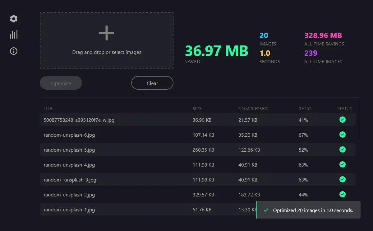CommunityShowcaseOptimusバージョン: v2.8.0OptimusOptimusは、画像最適化のためのデスクトップアプリケーションです。 WebP、JPEG、PNG形式画像の相互変換や圧縮をサポートしています。